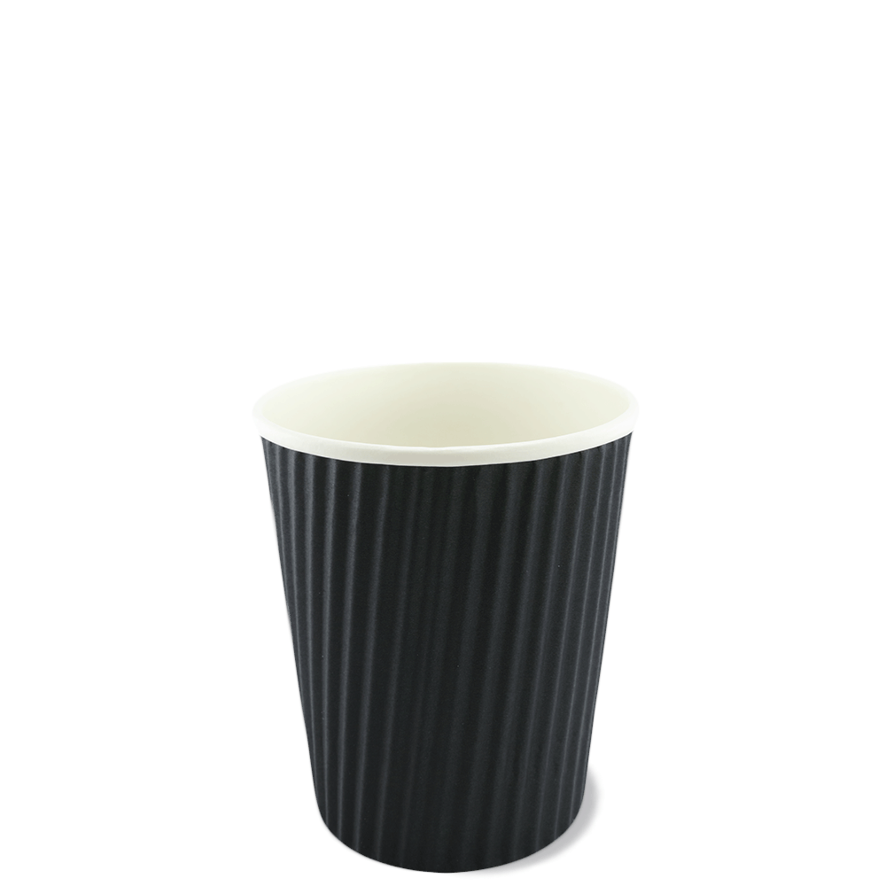 Ripple-Wrap Hot Cups feature a corrugated wrap that keeps hands cool and coffee hot. It serves two purpose, perfect for very hot drinks like tea and coffee, and also cold drinks. The 8oz cup is available in Black, Brown and White.